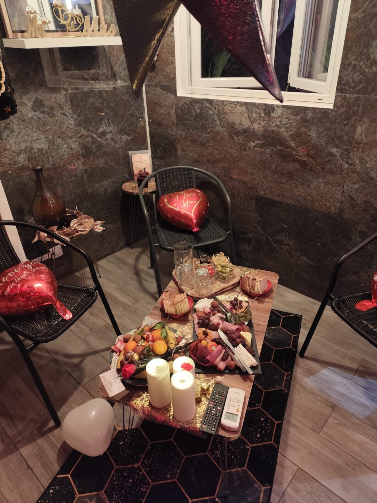 Réservez une nuit pour vous retrouvez, faire une pause. elle sera accompagné de la décorations love, la table de massage mise à disposition pour plus de moment de douceur. Le petit déjeuner vous sera servi dans l'intimité d'un passe, des viennoiseries, des boissons chaudes et du jus d'orange pour démarrer la journée en douceur.