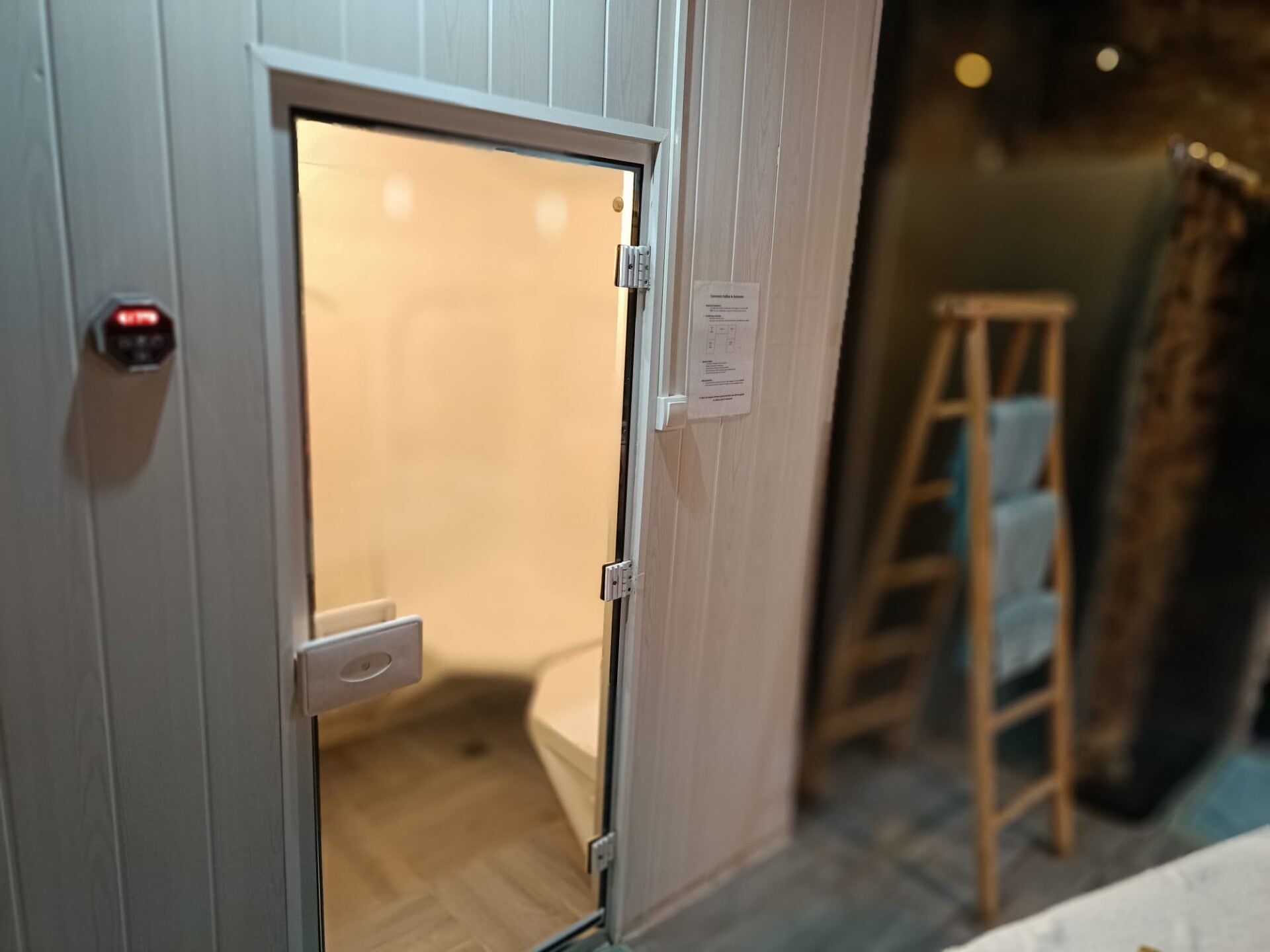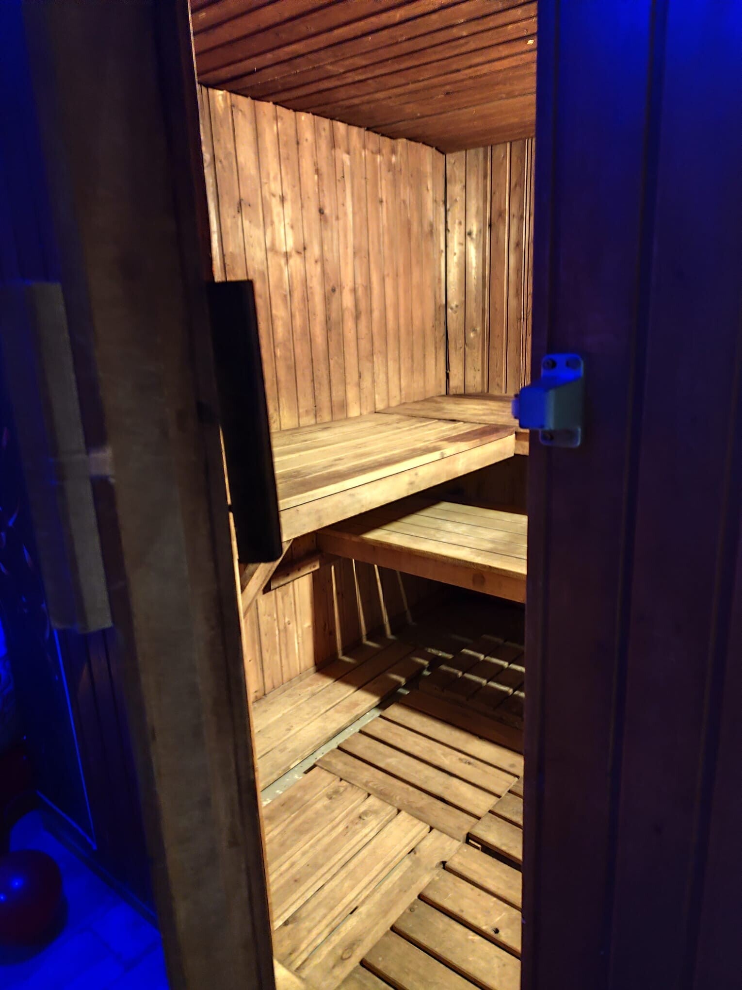 Détendez-vous dans la chaleur sèche de notre sauna. Parfait pour éliminer les toxines, stimuler la circulation sanguine et vous procurer une profonde sensation de détente et de vitalité.